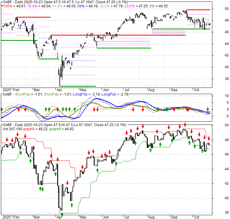 Price has closed above its short-term moving average. Short-term moving average is currently below mid-term; and below long-term moving average. From the relationship between price and moving averages: This stock is NEUTRAL in short-term; and NEUTRAL in mid-long term.[ GABF ] has closed above bottom band by 41.2%. Bollinger Bands are 5.3% narrower than normal. The current width of the bands does not suggest anything about the future direction or movement of prices.