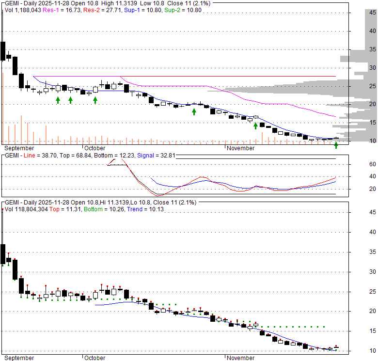 Price has closed above its short-term moving average. Short-term moving average is currently below mid-term; and below long-term moving average. From the relationship between price and moving averages: This stock is NEUTRAL in short-term; and NEUTRAL in mid-long term.[ GEMI ] has closed above bottom band by 32.8%. Bollinger Bands are 0% narrower than normal.