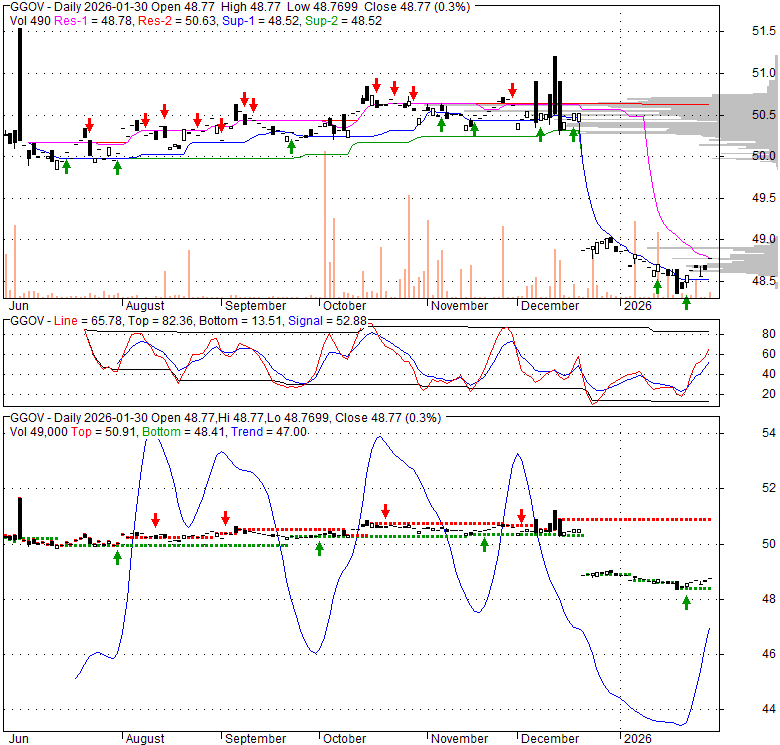 Price has closed above its short-term moving average. Short-term moving average is currently below mid-term; and below long-term moving average. From the relationship between price and moving averages: This stock is NEUTRAL in short-term; and BEARISH in mid-long term.[ GGOV ] has closed below upper band by 11.1%. Bollinger Bands are 39.2% narrower than normal. The current width of the bands does not suggest anything about the future direction or movement of prices.