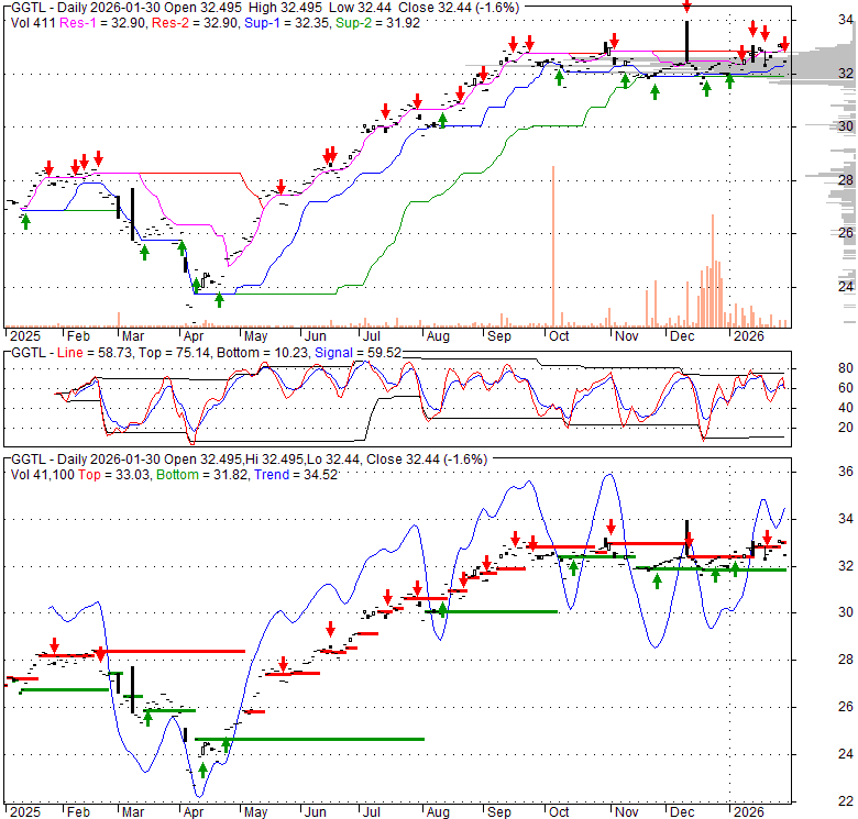 Price has closed below its short-term moving average. Short-term moving average is currently above mid-term; and above long-term moving average. From the relationship between price and moving averages: This stock is NEUTRAL in short-term; and NEUTRAL in mid-long term.[ GGTL ] has closed above bottom band by 19.5%. Bollinger Bands are 17.8% narrower than normal. The current width of the bands does not suggest anything about the future direction or movement of prices.