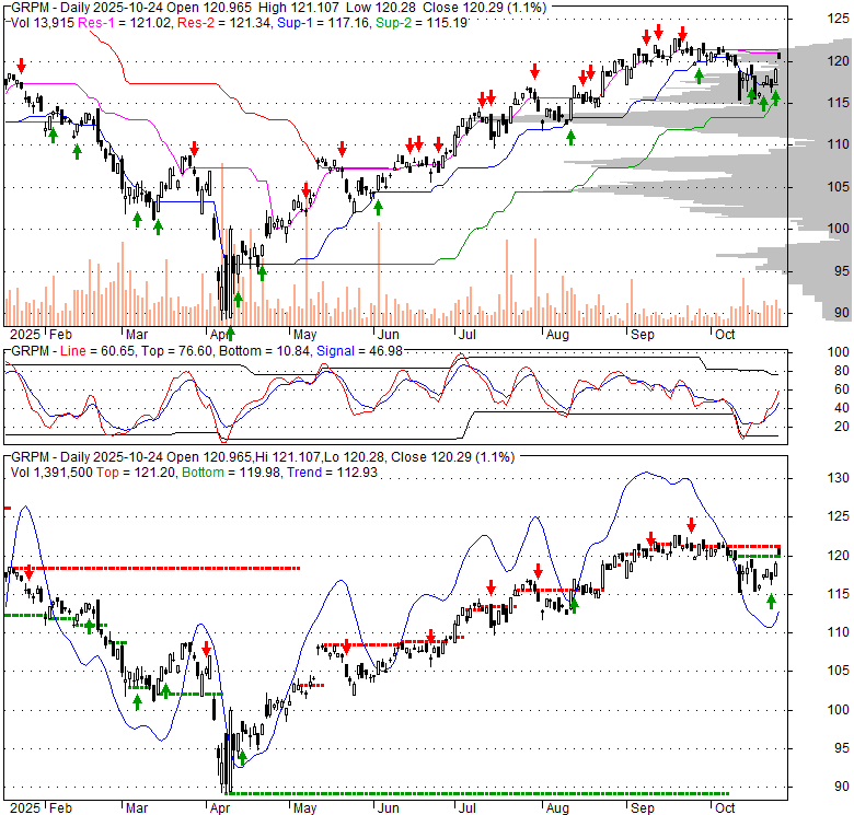 Price has closed above its short-term moving average. Short-term moving average is currently below mid-term; and above long-term moving average. From the relationship between price and moving averages: This stock is NEUTRAL in short-term; and NEUTRAL in mid-long term.[ GRPM ] has closed below upper band by 22.7%. Bollinger Bands are 21.7% wider than normal. The current width of the bands does not suggest anything about the future direction or movement of prices.