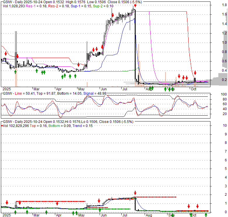 Price has closed below its short-term moving average. Short-term moving average is currently above mid-term; and below long-term moving average. From the relationship between price and moving averages: This stock is NEUTRAL in short-term; and NEUTRAL in mid-long term.[ GSIW ] has closed above bottom band by 39.0%. Bollinger Bands are 86% narrower than normal. The narrow width of the bands suggests low volatility as compared to its normal range. The bands have been in this narrow range for 54 bars. This is a sign that the market may be about to initiate a new trend.