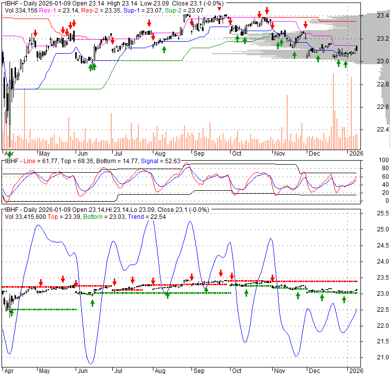 Price has closed above its short-term moving average. Short-term moving average is currently below mid-term; and below long-term moving average. From the relationship between price and moving averages: This stock is NEUTRAL in short-term; and BEARISH in mid-long term.[ IBHF ] has closed below upper band by 33.9%. Bollinger Bands are 41.5% narrower than normal. The narrow width of the bands suggests low volatility as compared to its normal range. The bands have been in this narrow range for 0 bars. This is a sign that the market may be about to initiate a new trend.