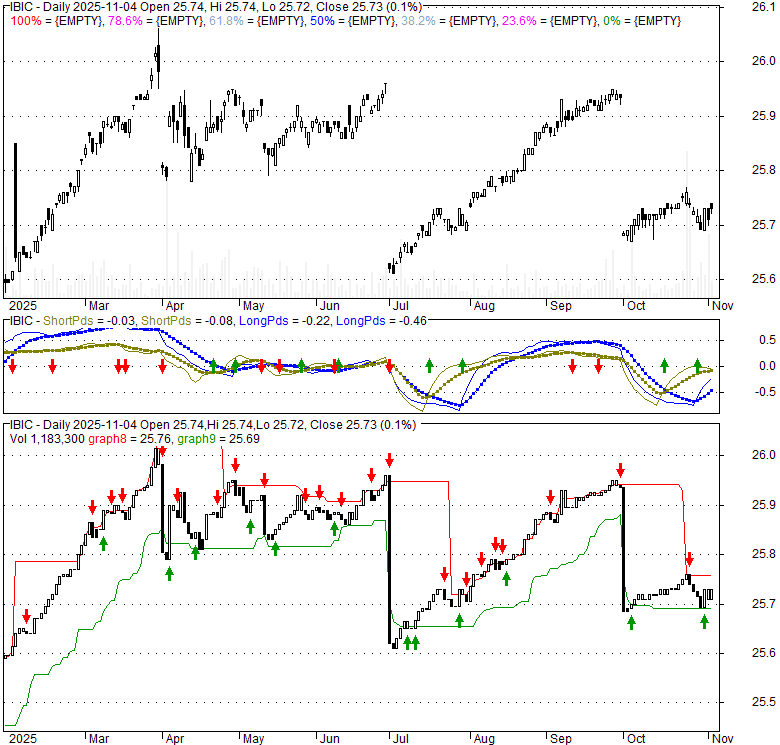 Price has closed above its short-term moving average. Short-term moving average is currently below mid-term; and below long-term moving average. From the relationship between price and moving averages: This stock is NEUTRAL in short-term; and NEUTRAL in mid-long term.[ IBIC ] has closed above bottom band by 46.6%. Bollinger Bands are 66.7% narrower than normal. The narrow width of the bands suggests low volatility as compared to its normal range. The bands have been in this narrow range for 10 bars. This is a sign that the market may be about to initiate a new trend.