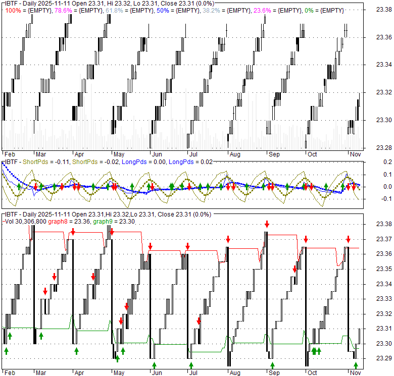 Price has closed above its short-term moving average. Short-term moving average is currently below mid-term; and below long-term moving average. From the relationship between price and moving averages: This stock is NEUTRAL in short-term; and BEARISH in mid-long term.[ IBTF ] has closed above bottom band by 35.2%. Bollinger Bands are 31.6% wider than normal. The current width of the bands does not suggest anything about the future direction or movement of prices.