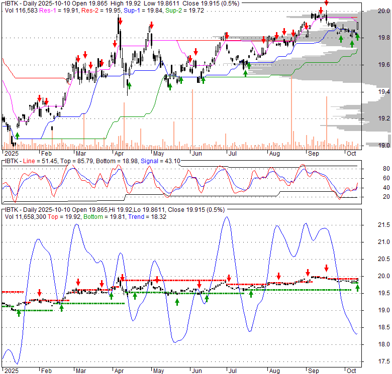 Price has closed above its short-term moving average. Short-term moving average is currently below mid-term; and above long-term moving average. From the relationship between price and moving averages: This stock is NEUTRAL in short-term; and NEUTRAL in mid-long term.[ IBTK ] has closed below upper band by 2.6%. Bollinger Bands are 48.7% narrower than normal. The narrow width of the bands suggests low volatility as compared to its normal range. The bands have been in this narrow range for 3 bars. This is a sign that the market may be about to initiate a new trend.