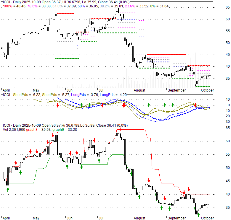 Price has closed above its short-term moving average. Short-term moving average is currently below mid-term; and below long-term moving average. From the relationship between price and moving averages: This stock is NEUTRAL in short-term; and BEARISH in mid-long term.[ ICOI ] has closed above bottom band by 49.1%. Bollinger Bands are 26.5% narrower than normal. The current width of the bands does not suggest anything about the future direction or movement of prices.