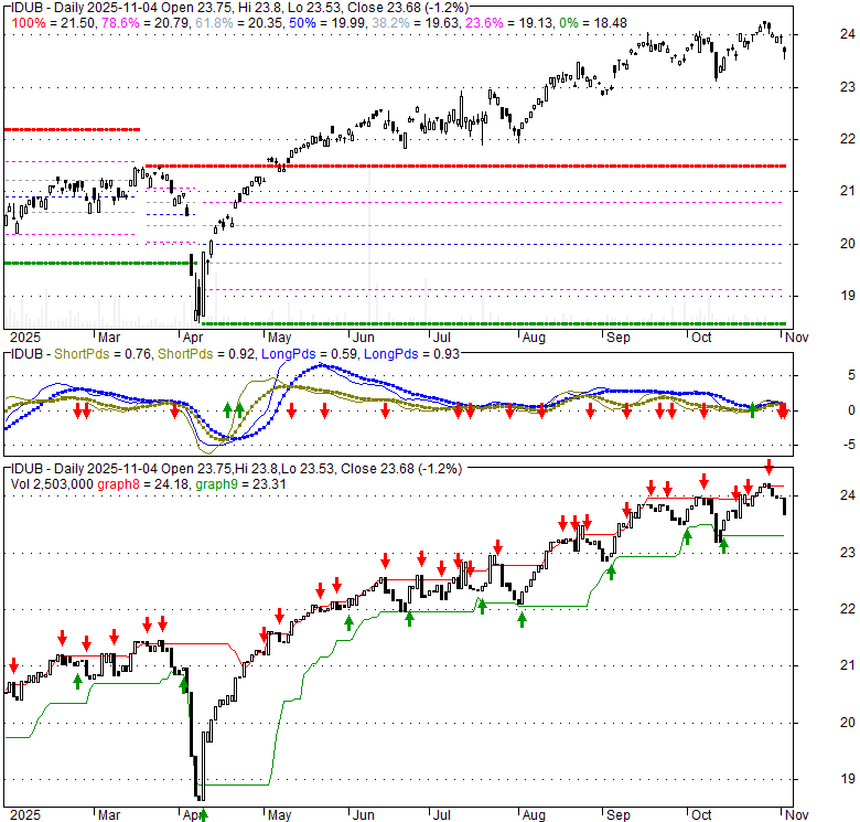 Price has closed below its short-term moving average. Short-term moving average is currently above mid-term; and above long-term moving average. From the relationship between price and moving averages: This stock is NEUTRAL in short-term; and BULLISH in mid-long term.[ IDUB ] has closed above bottom band by 14.0%. Bollinger Bands are 17.3% narrower than normal. The current width of the bands does not suggest anything about the future direction or movement of prices.
