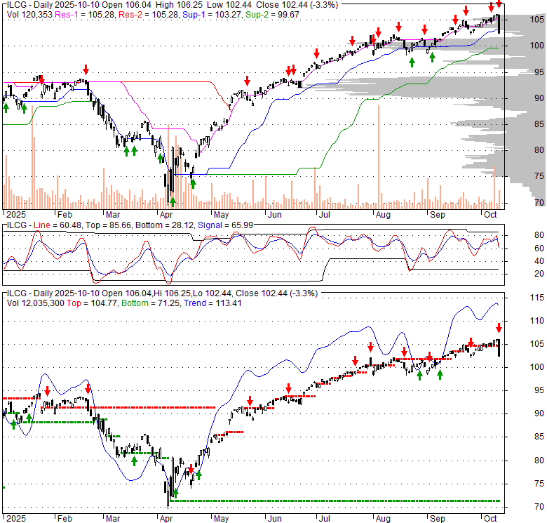 Price has closed below its short-term moving average. Short-term moving average is currently above mid-term; and above long-term moving average. From the relationship between price and moving averages: This stock is NEUTRAL in short-term; and BULLISH in mid-long term.[ ILCG ] has closed above bottom band by 4.2%. Bollinger Bands are 8.7% narrower than normal. The current width of the bands does not suggest anything about the future direction or movement of prices.