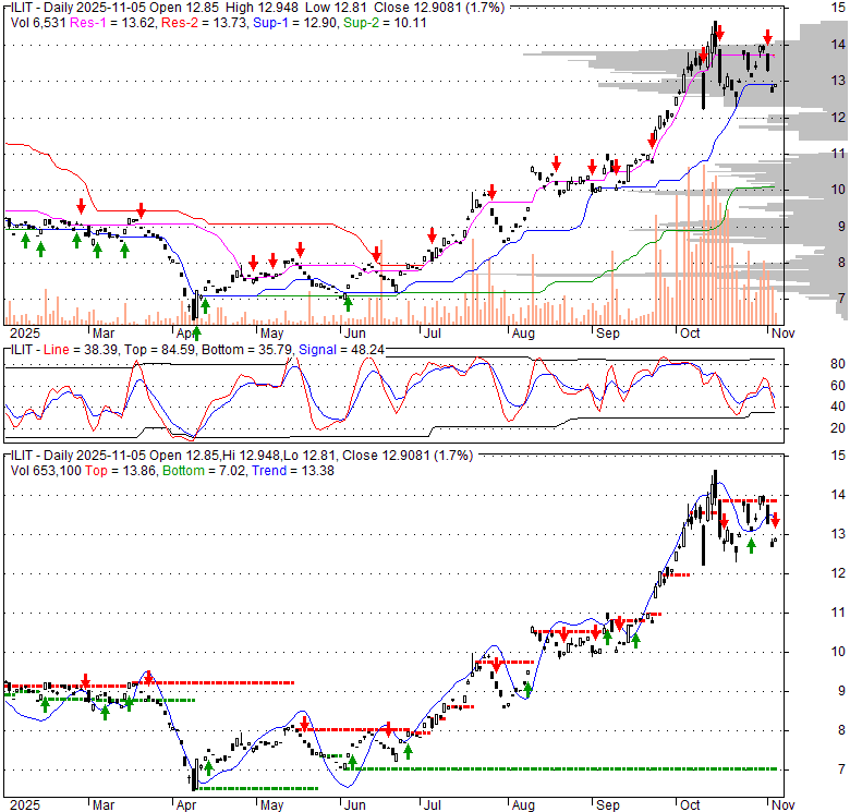 Price has closed below its short-term moving average. Short-term moving average is currently above mid-term; and above long-term moving average. From the relationship between price and moving averages: This stock is NEUTRAL in short-term; and BULLISH in mid-long term.[ ILIT ] has closed above bottom band by 34.0%. Bollinger Bands are 8.9% narrower than normal. The current width of the bands does not suggest anything about the future direction or movement of prices.