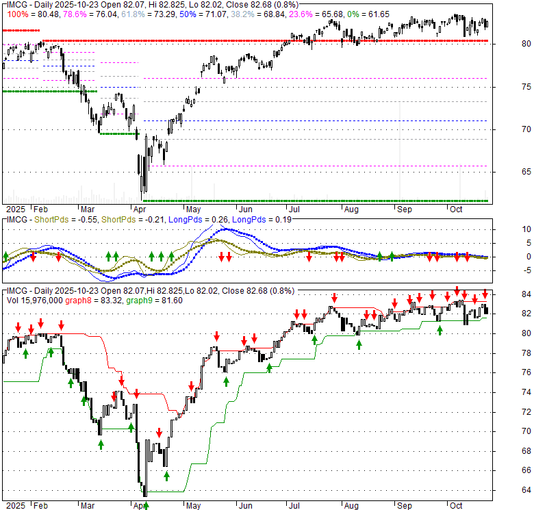 Price has closed above its short-term moving average. Short-term moving average is currently above mid-term; and above long-term moving average. From the relationship between price and moving averages: This stock is BULLISH in short-term; and BULLISH in mid-long term.[ IMCG ] has closed below upper band by 41.4%. Bollinger Bands are 0.7% narrower than normal. The current width of the bands does not suggest anything about the future direction or movement of prices.
