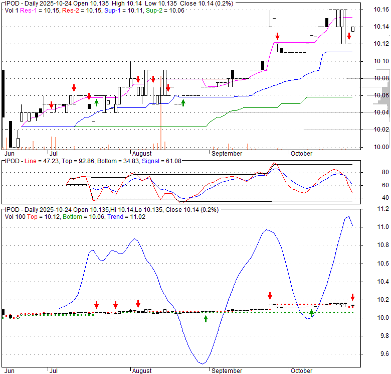 Price has closed below its short-term moving average. Short-term moving average is currently above mid-term; and below long-term moving average. From the relationship between price and moving averages: This stock is NEUTRAL in short-term; and NEUTRAL in mid-long term.[ IPOD ] has closed above bottom band by 45.5%. Bollinger Bands are 0% narrower than normal.