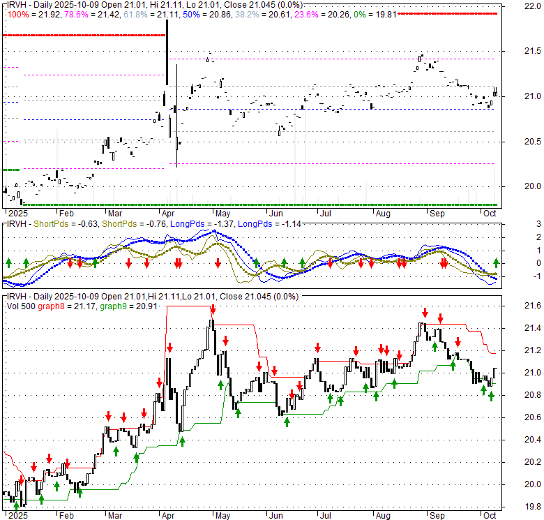 Price has closed above its short-term moving average. Short-term moving average is currently below mid-term; and below long-term moving average. From the relationship between price and moving averages: This stock is NEUTRAL in short-term; and NEUTRAL in mid-long term.[ IRVH ] has closed below upper band by 38.8%. Bollinger Bands are 23.2% narrower than normal. The current width of the bands does not suggest anything about the future direction or movement of prices.