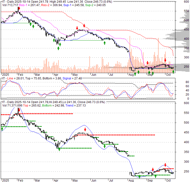 Price has closed above its short-term moving average. Short-term moving average is currently below mid-term; and below long-term moving average. From the relationship between price and moving averages: This stock is NEUTRAL in short-term; and BEARISH in mid-long term.[ IT ] has closed above bottom band by 29.8%. Bollinger Bands are 38.7% narrower than normal. The current width of the bands does not suggest anything about the future direction or movement of prices.