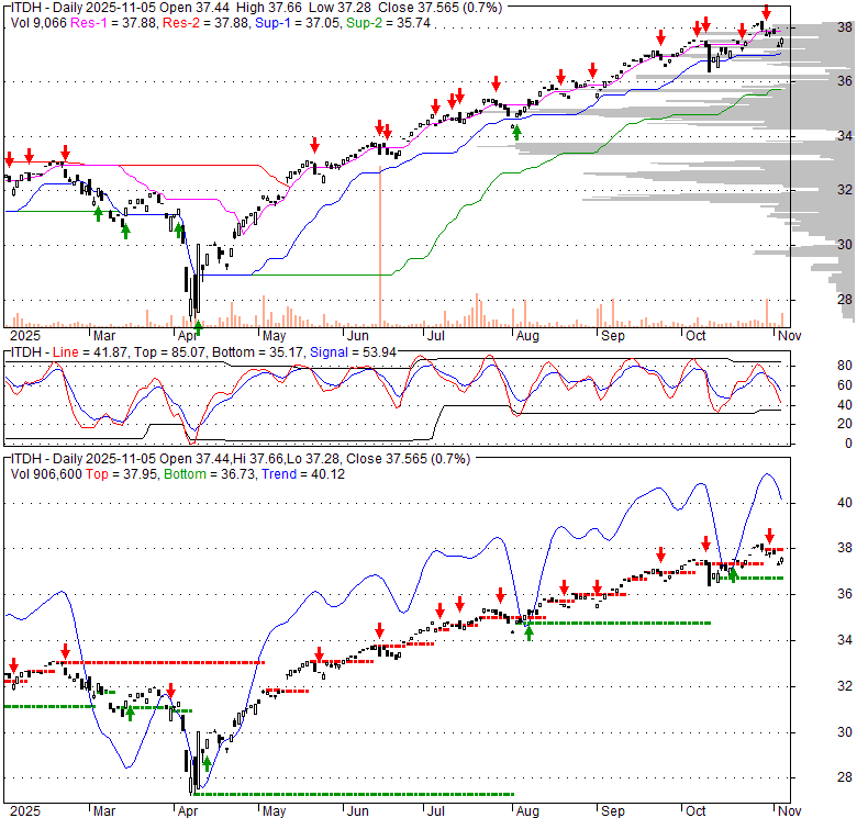 Price has closed below its short-term moving average. Short-term moving average is currently above mid-term; and above long-term moving average. From the relationship between price and moving averages: This stock is NEUTRAL in short-term; and BULLISH in mid-long term.[ ITDH ] has closed above bottom band by 47.0%. Bollinger Bands are 3.8% wider than normal. The current width of the bands does not suggest anything about the future direction or movement of prices.