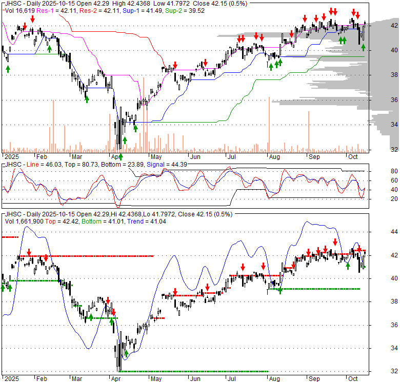 Price has closed above its short-term moving average. Short-term moving average is currently below mid-term; and above long-term moving average. From the relationship between price and moving averages: This stock is NEUTRAL in short-term; and NEUTRAL in mid-long term.[ JHSC ] has closed below upper band by 28.2%. Bollinger Bands are 3.8% narrower than normal. The current width of the bands does not suggest anything about the future direction or movement of prices.