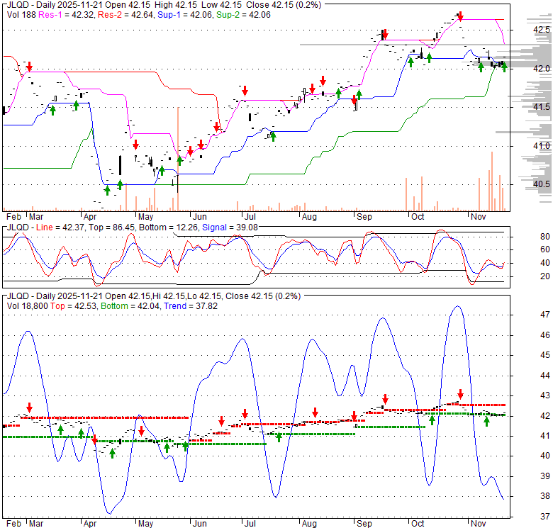 Price has closed above its short-term moving average. Short-term moving average is currently below mid-term; and above long-term moving average. From the relationship between price and moving averages: This stock is NEUTRAL in short-term; and NEUTRAL in mid-long term.[ JLQD ] has closed below upper band by 33.3%. Bollinger Bands are 52.9% narrower than normal. The narrow width of the bands suggests low volatility as compared to its normal range. The bands have been in this narrow range for 1 bars. This is a sign that the market may be about to initiate a new trend.