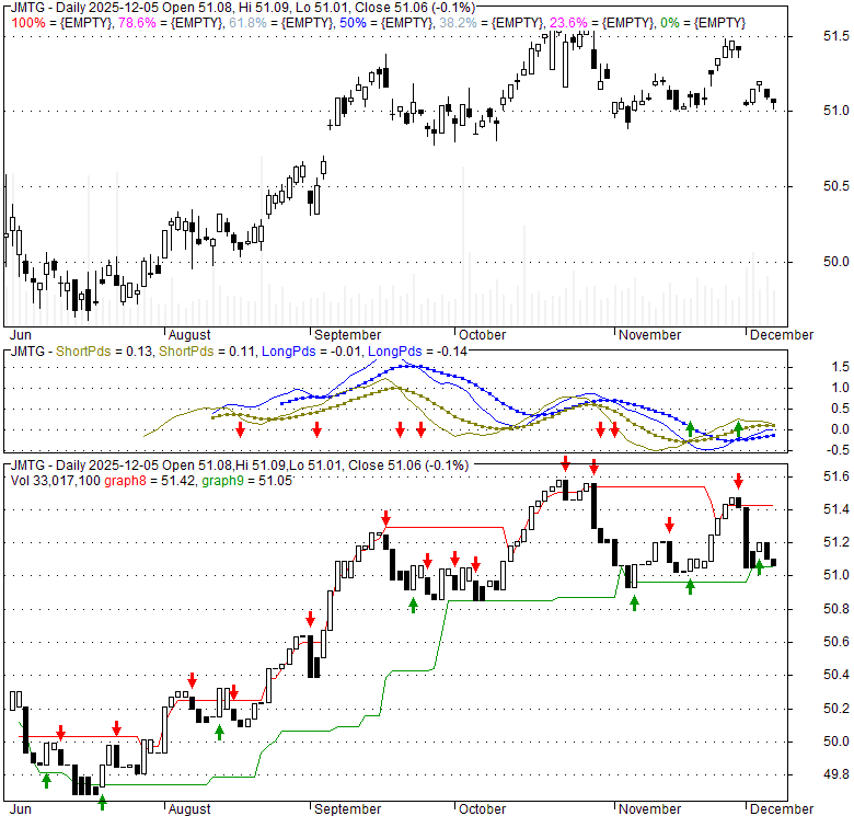 Price has closed below its short-term moving average. Short-term moving average is currently below mid-term; and above long-term moving average. From the relationship between price and moving averages: This stock is BEARISH in short-term; and NEUTRAL in mid-long term.[ JMTG ] has closed above bottom band by 29.8%. Bollinger Bands are 0% narrower than normal.