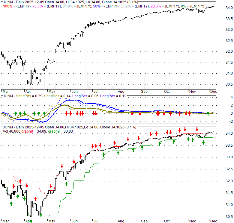 Price has closed above its short-term moving average. Short-term moving average is currently above mid-term; and above long-term moving average. From the relationship between price and moving averages: This stock is BULLISH in short-term; and BULLISH in mid-long term.[ JUNM ] has closed below upper band by 13.5%. Bollinger Bands are 101.4% wider than normal. The large width of the bands suggest high volatility as compared to its normal range. The bands have been in this wide range for 5 days. This is a sign that the current trend might continue.