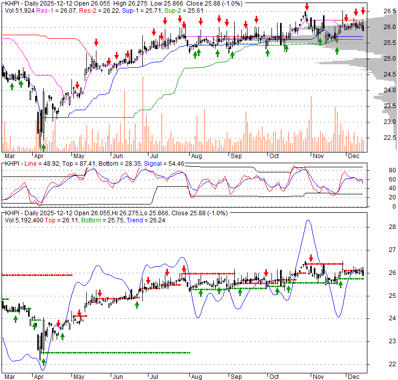 Price has closed below its short-term moving average. Short-term moving average is currently above mid-term; and above long-term moving average. From the relationship between price and moving averages: This stock is NEUTRAL in short-term; and BULLISH in mid-long term.[ KHPI ] has closed above bottom band by 20.8%. Bollinger Bands are 18.6% narrower than normal. The current width of the bands does not suggest anything about the future direction or movement of prices.