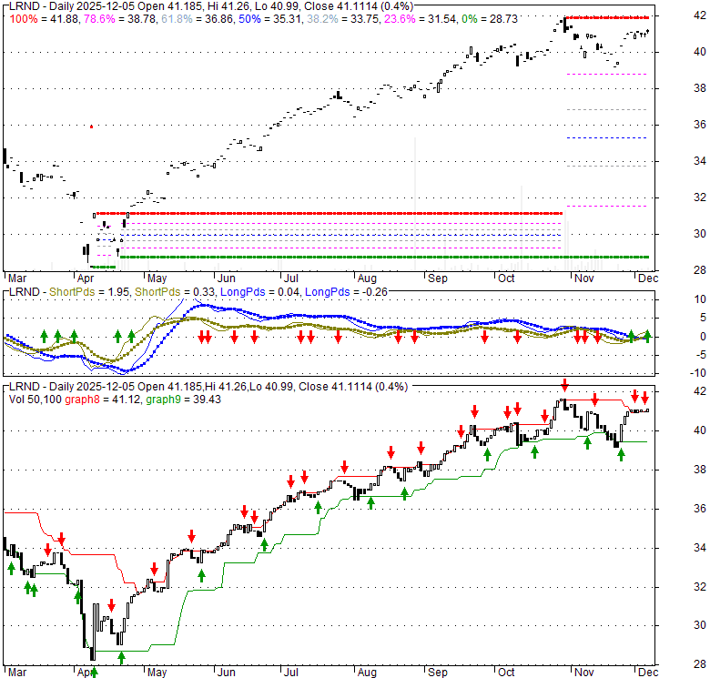Price has closed above its short-term moving average. Short-term moving average is currently above mid-term; and above long-term moving average. From the relationship between price and moving averages: This stock is BULLISH in short-term; and BULLISH in mid-long term.[ LRND ] has closed below upper band by 45.5%. Bollinger Bands are 26.1% wider than normal. The current width of the bands does not suggest anything about the future direction or movement of prices.