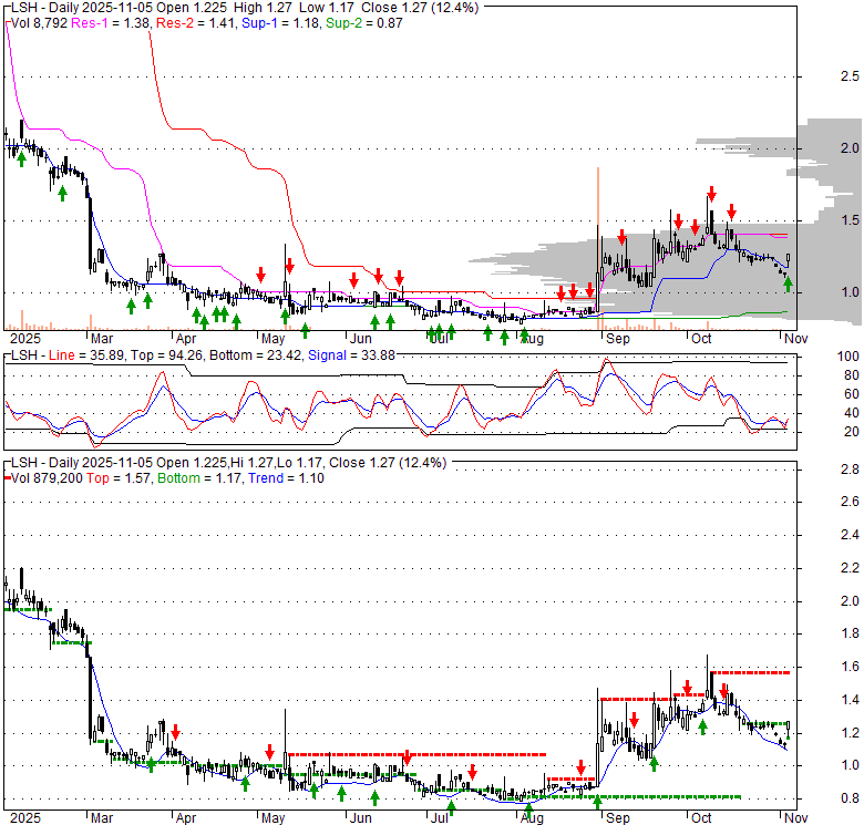 Price has closed above its short-term moving average. Short-term moving average is currently below mid-term; and above long-term moving average. From the relationship between price and moving averages: This stock is NEUTRAL in short-term; and NEUTRAL in mid-long term.[ LSH ] has closed below upper band by 39.7%. Bollinger Bands are 3.1% wider than normal. The current width of the bands does not suggest anything about the future direction or movement of prices.