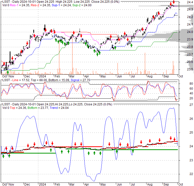 Price has closed below its short-term moving average. Short-term moving average is currently above mid-term; and above long-term moving average. From the relationship between price and moving averages: This stock is NEUTRAL in short-term; and BULLISH in mid-long term.[ LSST ] has closed above bottom band by 15.8%. Bollinger Bands are 19.2% wider than normal. The current width of the bands does not suggest anything about the future direction or movement of prices.