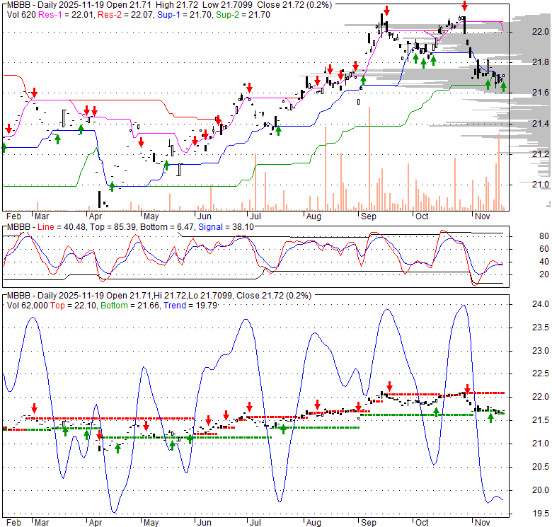 Price has closed above its short-term moving average. Short-term moving average is currently below mid-term; and below long-term moving average. From the relationship between price and moving averages: This stock is NEUTRAL in short-term; and NEUTRAL in mid-long term.[ MBBB ] has closed above bottom band by 42.6%. Bollinger Bands are 18.2% narrower than normal. The current width of the bands does not suggest anything about the future direction or movement of prices.