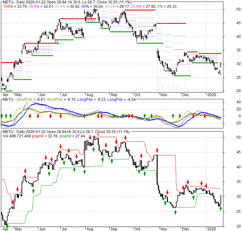 Price has closed above its short-term moving average. Short-term moving average is currently below mid-term; and below long-term moving average. From the relationship between price and moving averages: This stock is NEUTRAL in short-term; and BEARISH in mid-long term.[ METU ] has closed below upper band by 41.1%. Bollinger Bands are 12.5% narrower than normal. The current width of the bands does not suggest anything about the future direction or movement of prices.