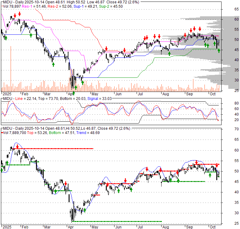 Price has closed above its short-term moving average. Short-term moving average is currently below mid-term; and above long-term moving average. From the relationship between price and moving averages: This stock is NEUTRAL in short-term; and NEUTRAL in mid-long term.[ MIDU ] has closed above bottom band by 40.9%. Bollinger Bands are 4.8% wider than normal. The current width of the bands does not suggest anything about the future direction or movement of prices.