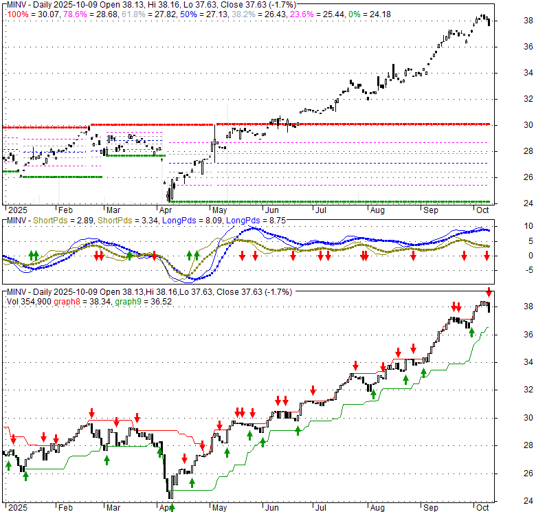 Price has closed below its short-term moving average. Short-term moving average is currently above mid-term; and above long-term moving average. From the relationship between price and moving averages: This stock is NEUTRAL in short-term; and BULLISH in mid-long term.[ MINV ] has closed below upper band by 42.6%. Bollinger Bands are 14.4% wider than normal. The current width of the bands does not suggest anything about the future direction or movement of prices.