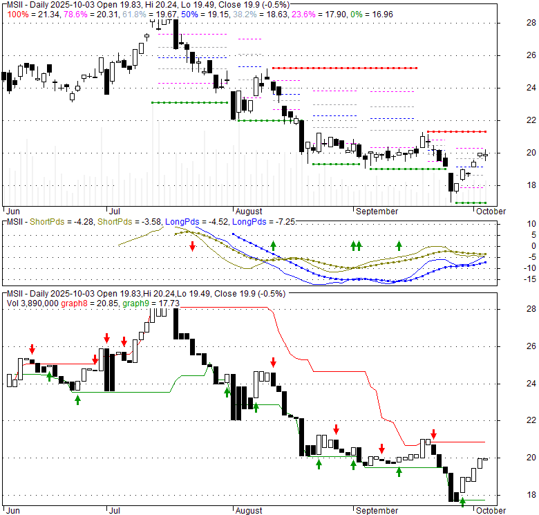 Price has closed above its short-term moving average. Short-term moving average is currently below mid-term; and below long-term moving average. From the relationship between price and moving averages: This stock is NEUTRAL in short-term; and NEUTRAL in mid-long term.[ MSII ] has closed below upper band by 40.8%. Bollinger Bands are 0% narrower than normal.
