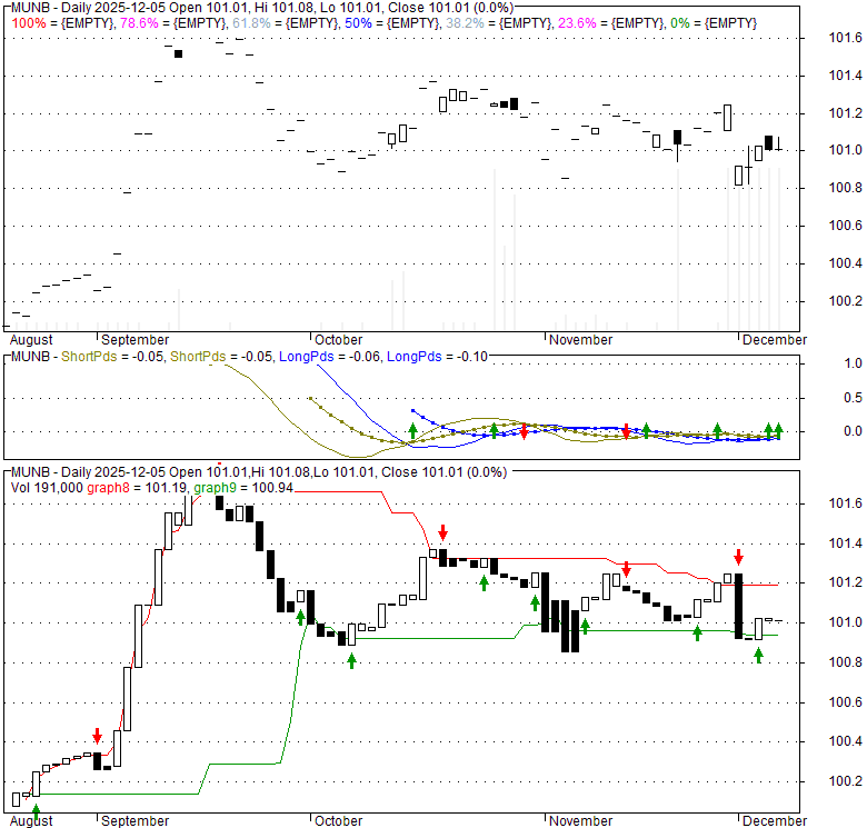 Price has closed above its short-term moving average. Short-term moving average is currently below mid-term; and below long-term moving average. From the relationship between price and moving averages: This stock is NEUTRAL in short-term; and NEUTRAL in mid-long term.[ MUNB ] has closed above bottom band by 34.8%. Bollinger Bands are 0% narrower than normal.