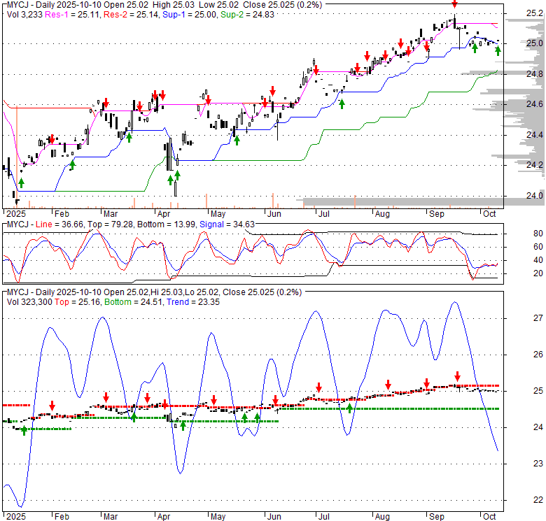 Price has closed above its short-term moving average. Short-term moving average is currently below mid-term; and above long-term moving average. From the relationship between price and moving averages: This stock is NEUTRAL in short-term; and NEUTRAL in mid-long term.[ MYCJ ] has closed above bottom band by 44.6%. Bollinger Bands are 38.1% narrower than normal. The current width of the bands does not suggest anything about the future direction or movement of prices.