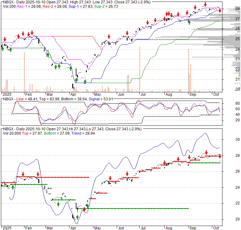 Price has closed below its short-term moving average. Short-term moving average is currently above mid-term; and above long-term moving average. From the relationship between price and moving averages: This stock is NEUTRAL in short-term; and BULLISH in mid-long term.[ NBGX ] has closed below the lower bollinger band by 17.9%. If price is in a downtrend band; this downward trend might continue. However a short term pullback inside the band is likely. Bollinger Bands are 21.3% narrower than normal. The current width of the bands does not suggest anything about the future direction or movement of prices.