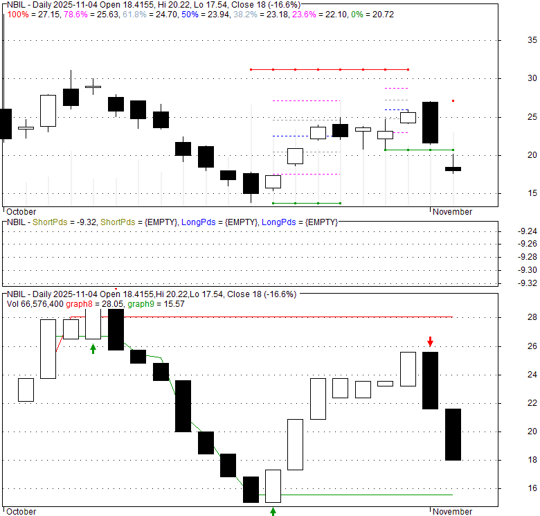 Price has closed below its short-term moving average. Short-term moving average is currently below mid-term; and below long-term moving average. From the relationship between price and moving averages: This stock is NEUTRAL in short-term; and NEUTRAL in mid-long term.[ NBIL ] has closed above bottom band by 25.7%. Bollinger Bands are 0% narrower than normal.