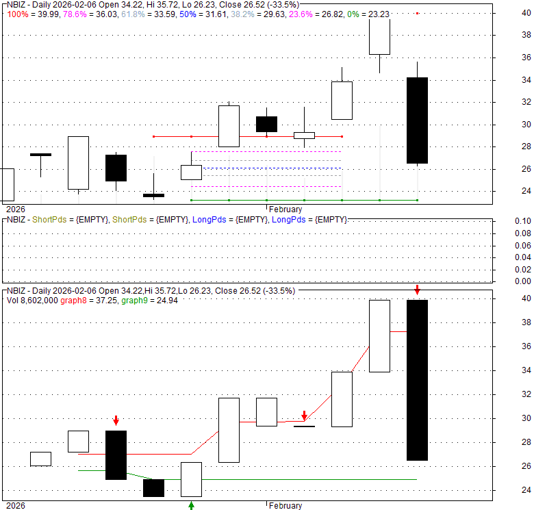 Price has closed below its short-term moving average. Short-term moving average is currently below mid-term; and below long-term moving average. From the relationship between price and moving averages: This stock is NEUTRAL in short-term; and NEUTRAL in mid-long term.[ NBIZ ] has closed Bollinger Bands are 0% narrower than normal.