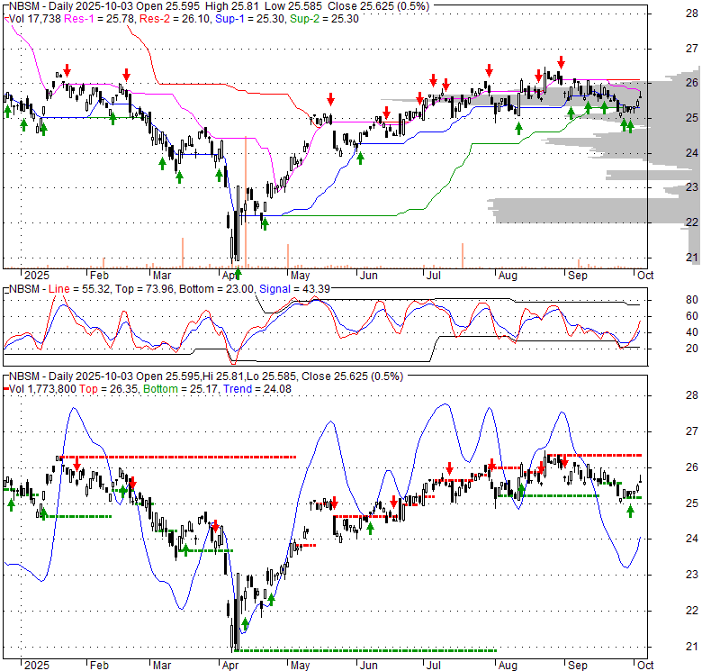 Price has closed above its short-term moving average. Short-term moving average is currently below mid-term; and above long-term moving average. From the relationship between price and moving averages: This stock is NEUTRAL in short-term; and NEUTRAL in mid-long term.[ NBSM ] has closed below upper band by 26.6%. Bollinger Bands are 34.8% narrower than normal. The current width of the bands does not suggest anything about the future direction or movement of prices.