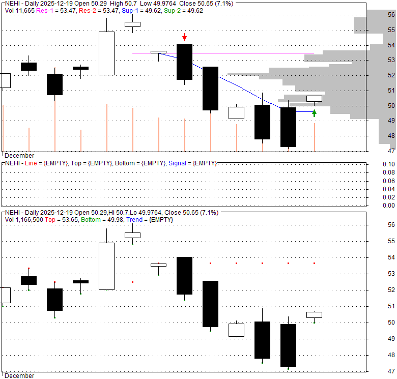 Price has closed above its short-term moving average. Short-term moving average is currently below mid-term; and below long-term moving average. From the relationship between price and moving averages: This stock is NEUTRAL in short-term; and NEUTRAL in mid-long term.[ NEHI ] has closed Bollinger Bands are 0% narrower than normal.