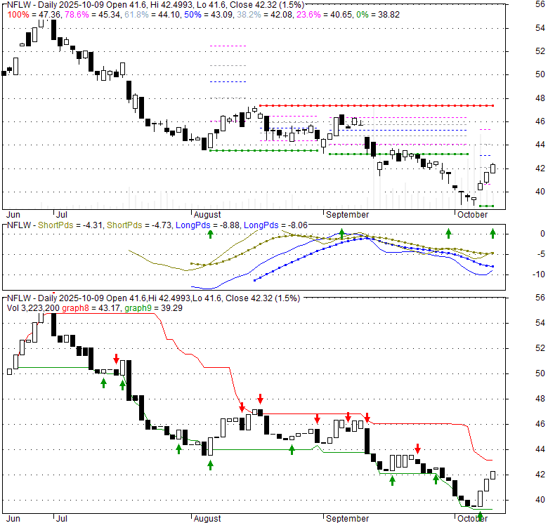 Price has closed above its short-term moving average. Short-term moving average is currently below mid-term; and below long-term moving average. From the relationship between price and moving averages: This stock is NEUTRAL in short-term; and NEUTRAL in mid-long term.[ NFLW ] has closed below upper band by 33.2%. Bollinger Bands are 0% narrower than normal.