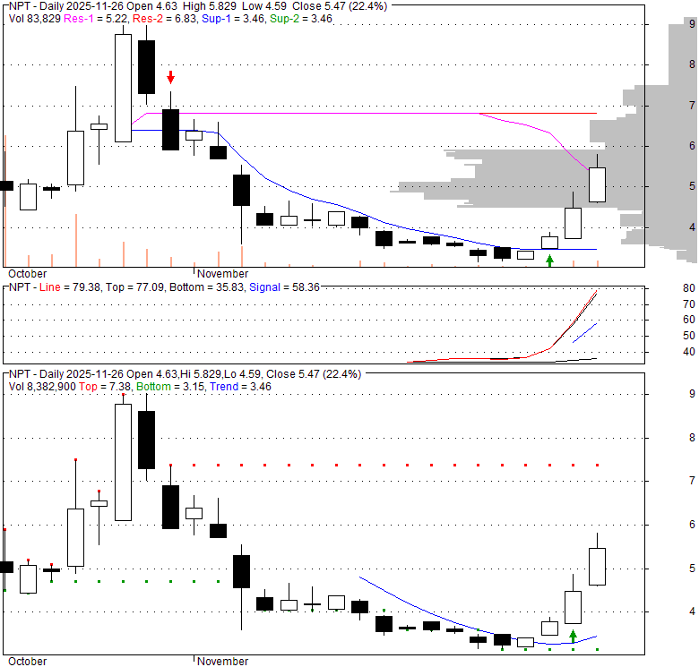 Price has closed above its short-term moving average. Short-term moving average is currently below mid-term; and below long-term moving average. From the relationship between price and moving averages: This stock is NEUTRAL in short-term; and NEUTRAL in mid-long term.[ NPT ] has closed Bollinger Bands are 0% narrower than normal.