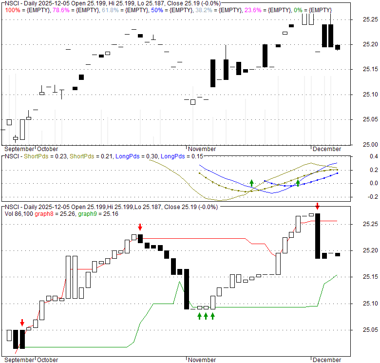 Price has closed below its short-term moving average. Short-term moving average is currently above mid-term; and below long-term moving average. From the relationship between price and moving averages: This stock is NEUTRAL in short-term; and NEUTRAL in mid-long term.[ NSCI ] has closed above bottom band by 44.9%. Bollinger Bands are 0% narrower than normal.