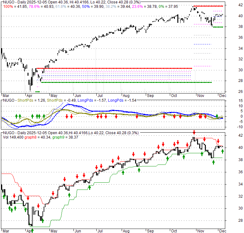 Price has closed below its short-term moving average. Short-term moving average is currently above mid-term; and above long-term moving average. From the relationship between price and moving averages: This stock is NEUTRAL in short-term; and BULLISH in mid-long term.[ NUGO ] has closed above bottom band by 15.7%. Bollinger Bands are 66.2% wider than normal. The large width of the bands suggest high volatility as compared to its normal range. The bands have been in this wide range for 8 days. This is a sign that the current trend might continue.