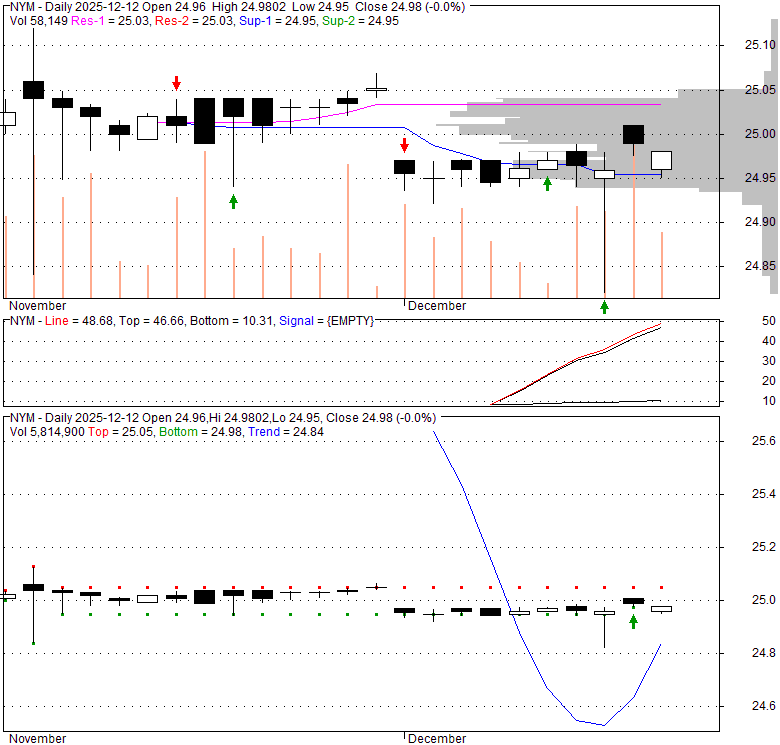 Price has closed above its short-term moving average. Short-term moving average is currently below mid-term; and below long-term moving average. From the relationship between price and moving averages: This stock is NEUTRAL in short-term; and NEUTRAL in mid-long term.[ NYM ] has closed above bottom band by 45.6%. Bollinger Bands are 0% narrower than normal.