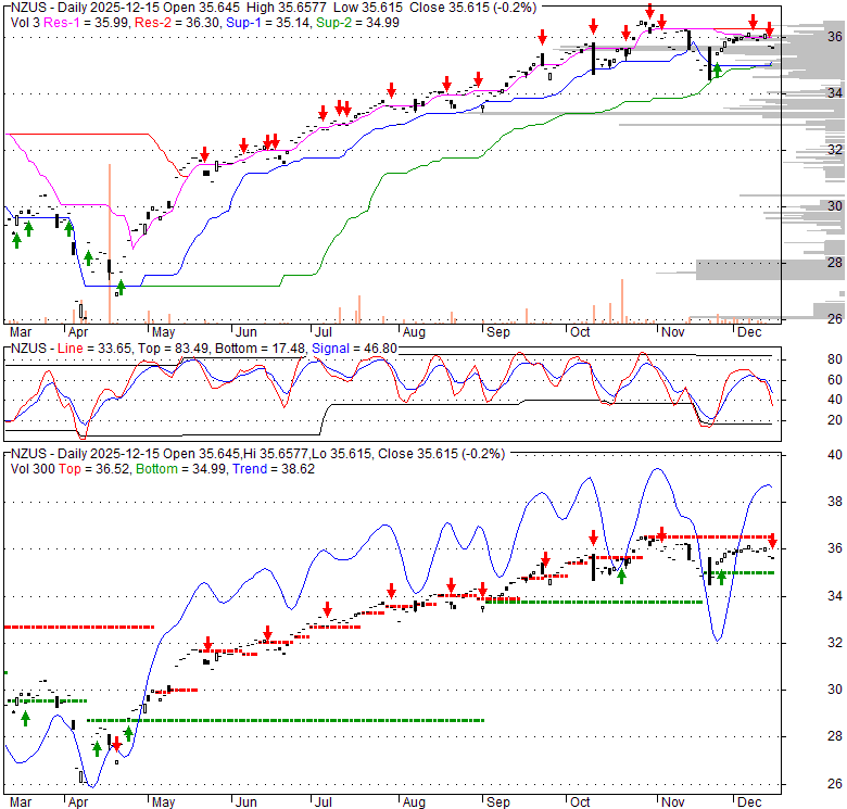 Price has closed below its short-term moving average. Short-term moving average is currently above mid-term; and above long-term moving average. From the relationship between price and moving averages: This stock is NEUTRAL in short-term; and BULLISH in mid-long term.[ NZUS ] has closed above bottom band by 30.4%. Bollinger Bands are 47% narrower than normal. The narrow width of the bands suggests low volatility as compared to its normal range. The bands have been in this narrow range for 0 bars. This is a sign that the market may be about to initiate a new trend.