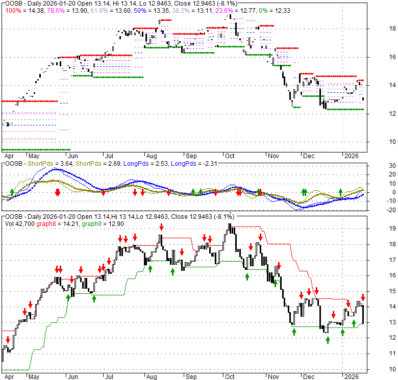 Price has closed below its short-term moving average. Short-term moving average is currently above mid-term; and below long-term moving average. From the relationship between price and moving averages: This stock is NEUTRAL in short-term; and NEUTRAL in mid-long term.[ OOSB ] has closed above bottom band by 19.8%. Bollinger Bands are 28% narrower than normal. The current width of the bands does not suggest anything about the future direction or movement of prices.
