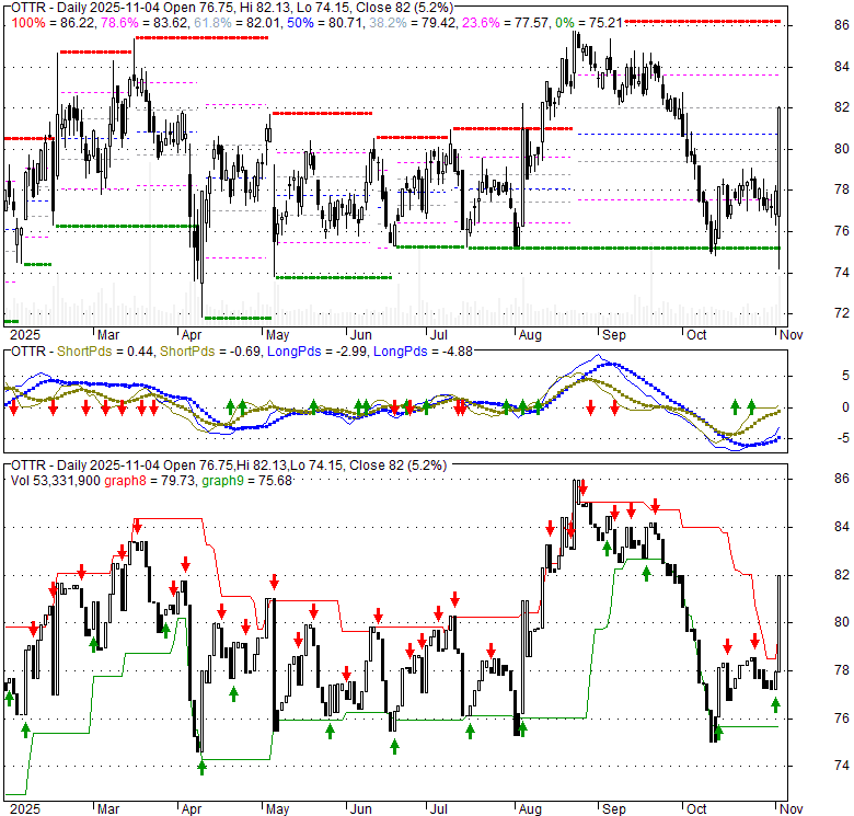 Price has closed above its short-term moving average. Short-term moving average is currently below mid-term; and below long-term moving average. From the relationship between price and moving averages: This stock is NEUTRAL in short-term; and NEUTRAL in mid-long term.[ OTTR ] has closed Bollinger Bands are 14.4% wider than normal. The current width of the bands does not suggest anything about the future direction or movement of prices.
