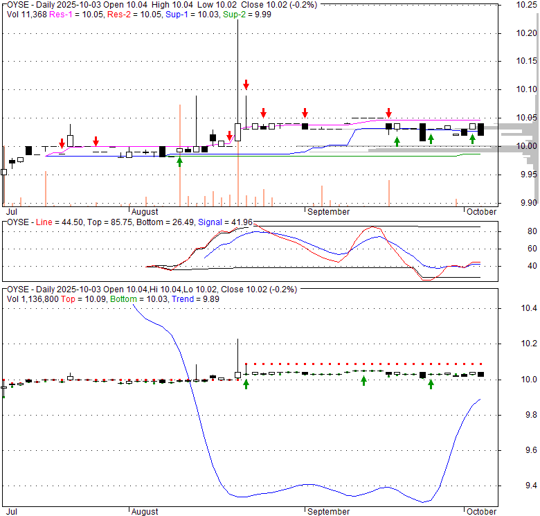Price has closed above its short-term moving average. Short-term moving average is currently above mid-term; and below long-term moving average. From the relationship between price and moving averages: This stock is BULLISH in short-term; and NEUTRAL in mid-long term.[ OYSE ] has closed below upper band by 39.5%. Bollinger Bands are 0% narrower than normal.