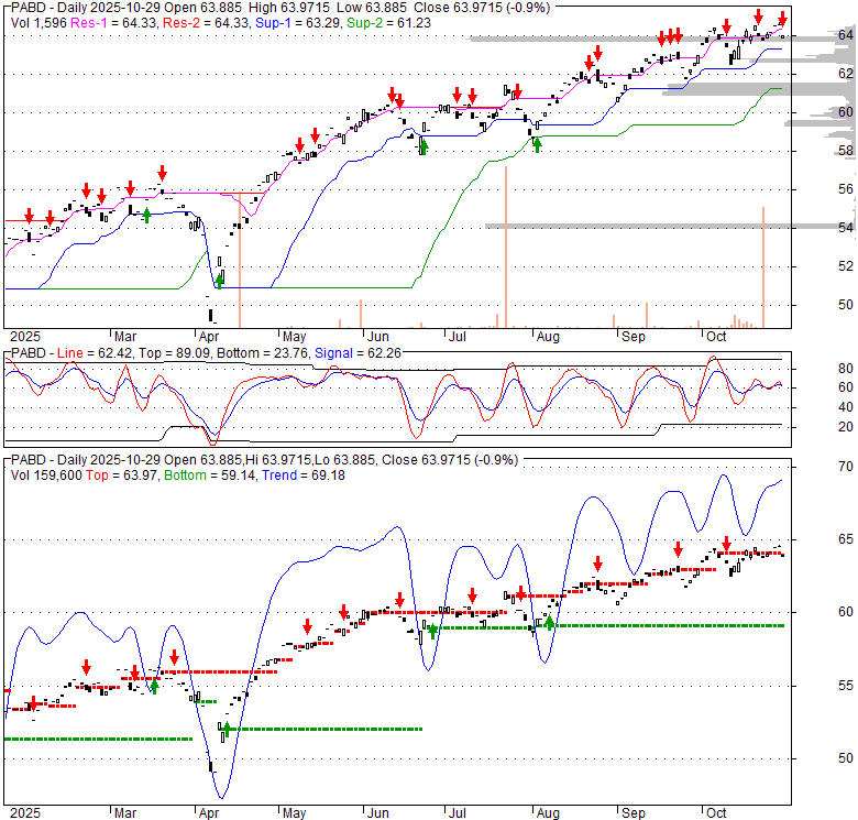 Price has closed below its short-term moving average. Short-term moving average is currently above mid-term; and above long-term moving average. From the relationship between price and moving averages: This stock is NEUTRAL in short-term; and BULLISH in mid-long term.[ PABD ] has closed above bottom band by 47.8%. Bollinger Bands are 13.2% narrower than normal. The current width of the bands does not suggest anything about the future direction or movement of prices.