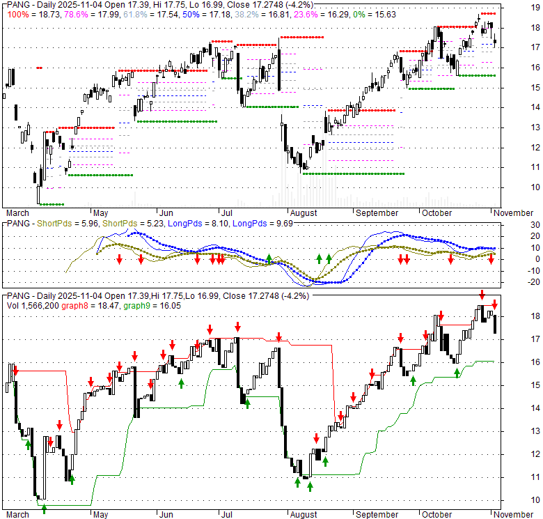 Price has closed below its short-term moving average. Short-term moving average is currently above mid-term; and above long-term moving average. From the relationship between price and moving averages: This stock is NEUTRAL in short-term; and BULLISH in mid-long term.[ PANG ] has closed above bottom band by 44.8%. Bollinger Bands are 6.8% narrower than normal. The current width of the bands does not suggest anything about the future direction or movement of prices.